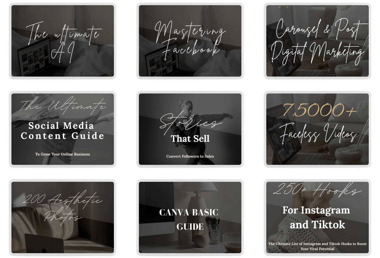 Everything inside — templates, tutorials, prompts, and guidance — was created to help you save time, avoid burnout, and finally build an online business that supports your lifestyle.